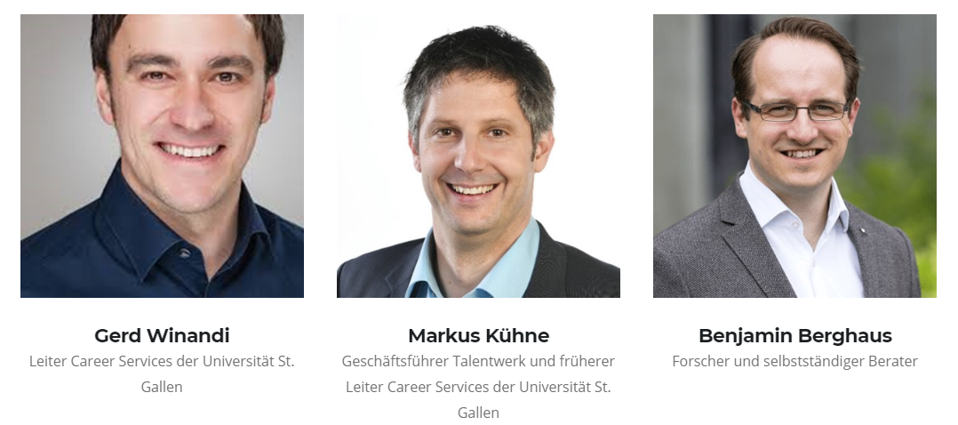 Die Projektserie wird heute von zwei St. Galler Karriereberatungsexperten und einem Forscher vorangetrieben: Gerd Winandi-Martin (Leiter Career Services der Universität St. Gallen), Markus Kühne (Geschäftsführer Talentwerk und früherer Leiter Career Services der Universität St. Gallen) und Benjamin Berghaus (Gründungspartner Forschung).